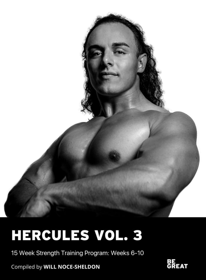 These next 5 week are about pushing the weight to your highest limits, maintaining proper form, and putting yourself to the test. As before, Hercules Vol. 3 contains a significant focus on abs, obliques, lower back, shoulders, scaps, hips, etc.